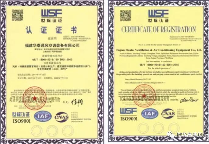 华泰公司是福建省内最早取得公安部消防产品合格评定中心颁发的中国国家强制性产品认证证书( CCCF认证证书)的制造商之一。现有生产设备齐全,技术成熟,工艺先进,同时引进了全自动防火阀流水线,拥有省内最完整的3C风机风阀检测系统,使通风设备各项性能指标达到国内领先水平。
